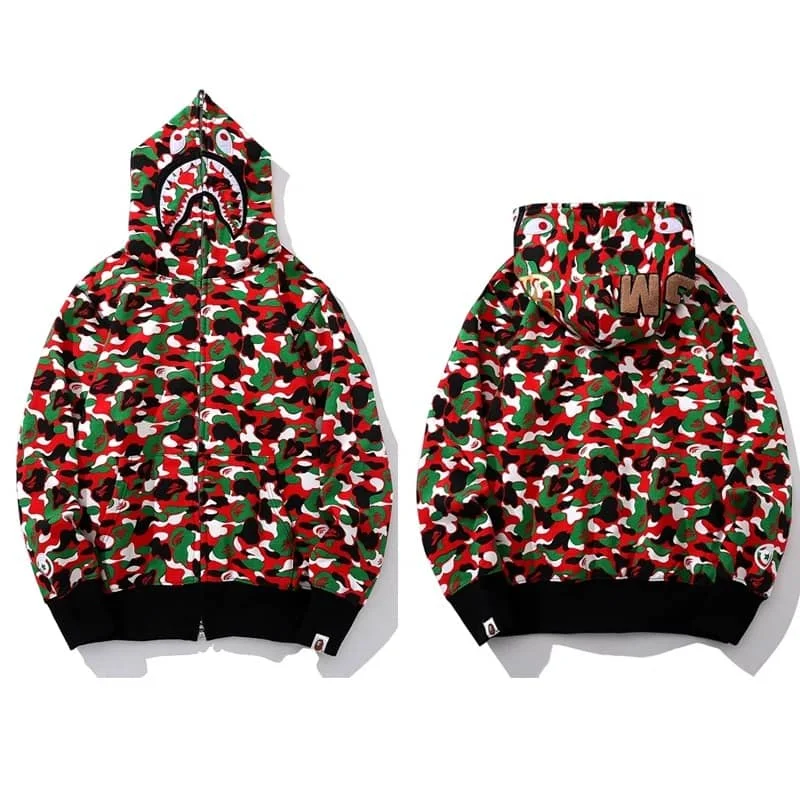 APE Shark Mouth Camo Hoodie Loose Cardigan Unisex Spring Autumn Jacket Style 10